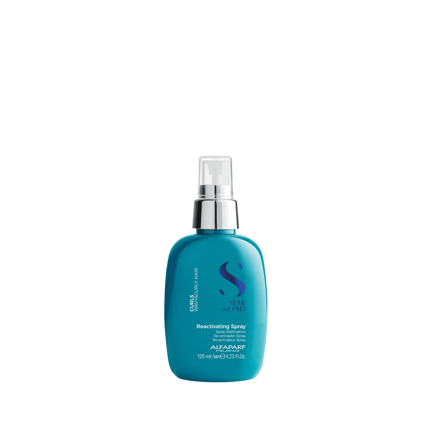 Alfaparf Semi di Lino Curls Reactivating Spray revives the shape of curls the next day and can protect from heat up to 230ยฐ C and humidity for long-lasting definition.