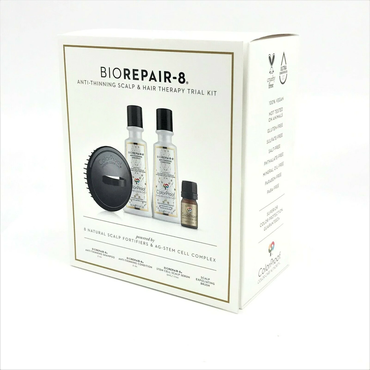 Step 1- Deep cleanse and exfoliate with the BioRepair-8 Anti-Thinning Shampoo and the Scalp Exfoliating Brush to prep the scalp to receive active ingredients from Step 2 and 3.