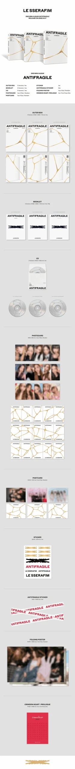 Includes:Â CD, Photobook, Random Photocard out of 15, Random Postcard out of 3, Sticker, Antifragile Sticker, Random Folding Poster out of 3