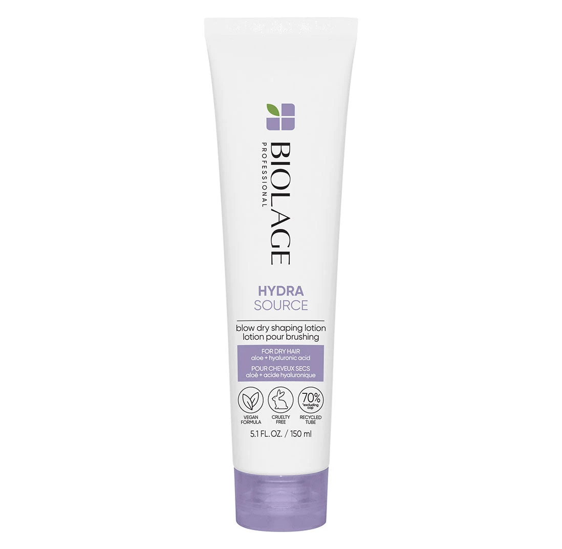 Hydra Source Blow Dry Shaping Lotion, infused with aloe and hyaluronic acid, provides the perfect combination of heat protection, weightless hydration and shape memory.