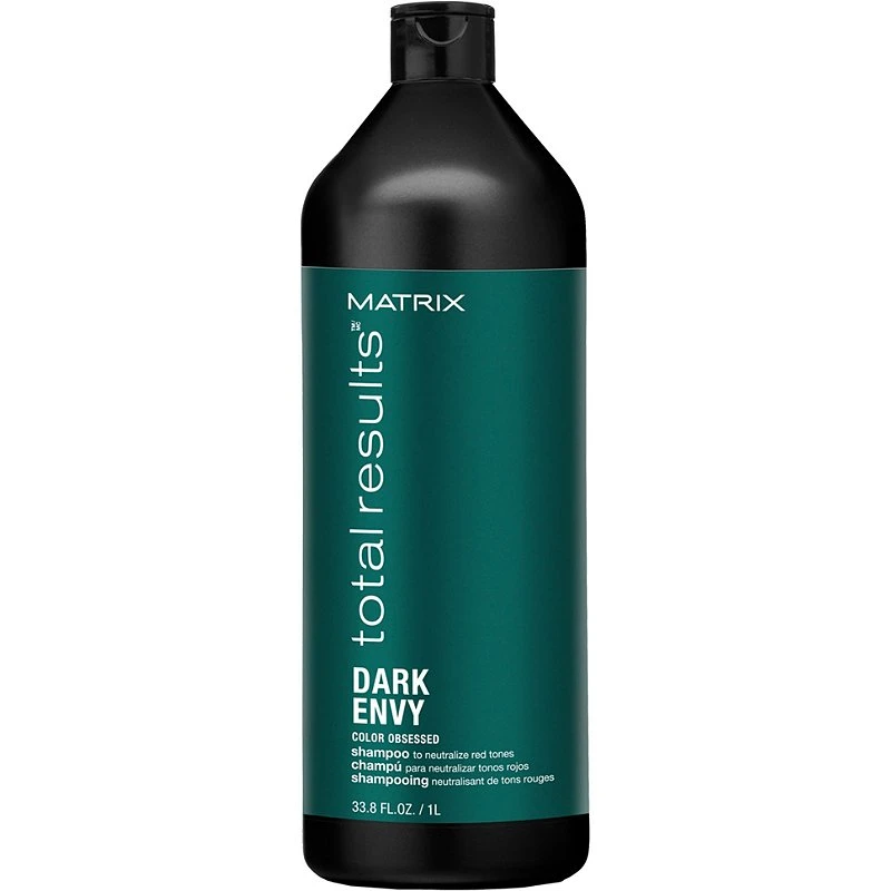 Matrix Total Results Dark Envy Green Shampoo is a green, color-depositing shampoo that enriches dark bases and neutralizes red undertones.