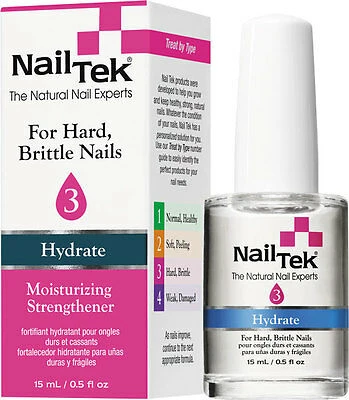 Nail Tek Moisturizing Strengthener 3 for hard, brittle nails. Enriched with pentavitin, a unique “water magnet molecule” that banks water at the nail surface.