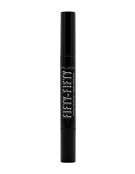 Palladio’s Fifty-Fifty Cat-Eye Liquid Liner + Smoky Kajal Liner is a dual-ended professional eye styling wonder. Featuring an ultra-soft Kajal crayon on one end and a super-precise fiber-tip liner on the other, this 2-in-1 product creates a variety of smoky and defined eye looks.