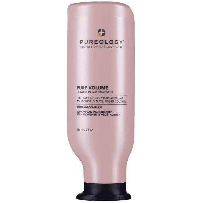 Pureology Pure Volume Conditoner enhances volume and restores movement to flat, fine color-treated hair with key ingredients Wheat Protein and Eucalyptus Leaf Extract and a signature aromatherapy blend of Pink Grapefruit, Wild Rose, and Cedarwood.