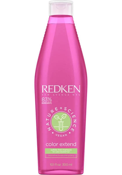 This shampoo is part of Redken’s Nature + Science haircare collection. This silicone and sulfate-free shampoo features a gentle non-stripping formula to enhance vibrancy on color-treated hair. Formulated with naturally-derived ginseng, Nature + Science Color Extend Shampoo adds shine and helps maintain radiant salon-fresh haircolor with every use.