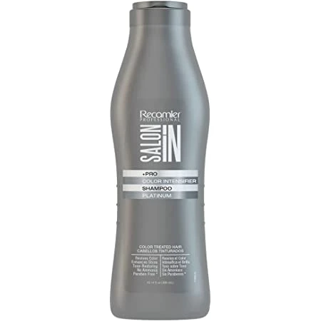 Recamier Salon In Color Intensifier Platinum Shampoo is a very soft shampoo with last generation hair dye ingredients that fix onto hair shaft. No ammonia. Specially formulated for revival of hair color or to intensify color treated hair. Neutralizes orange reflections and corrects color. Gives hair incomparable shine and luminosity.